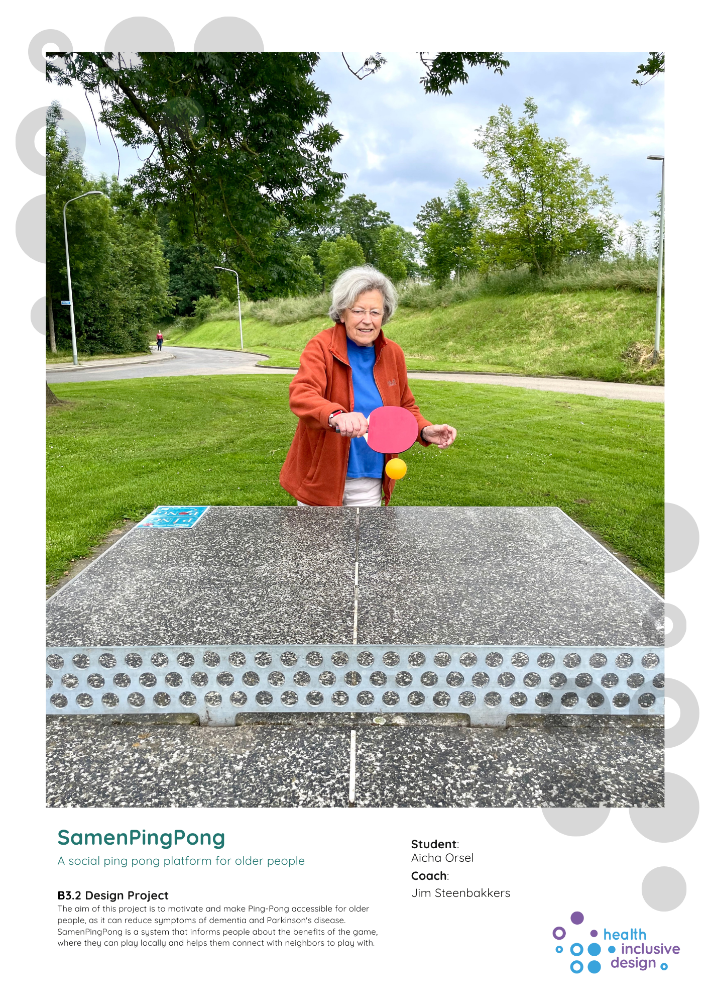 Dementia and Parkinson’s disease are prevalent conditions among older adults, affecting millions worldwide, with numbers steadily increasing as the global population ages. Currently, there is no cure for either disease, which has led to extensive research on methods to alleviate symptoms. Recent studies have highlighted the potential of table tennis in reducing the symptoms of both dementia and Parkinson’s disease. Despite these promising findings, awareness is limited, and facilities offering table tennis specifically for this demographic are scarce.
