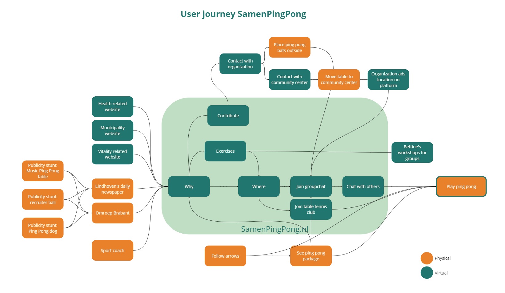To address this gap, I conducted several user interviews, activities, and tests, resulting in the development of a dedicated platform for older adults. This platform provides comprehensive information on the health benefits of table tennis, helps users locate nearby places to play, connects them with potential playing partners, and offers home exercises to build confidence before playing in social settings. Additionally, public ping pong tables will be equipped with bats and information on the health benefits of playing, encouraging participation and awareness among older adults.